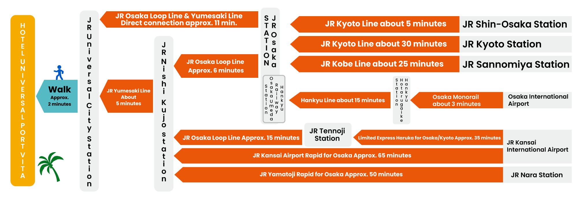 在大阪環球城大道(Hotel Kintetsu Universal City)禮車站下車站後,左轉。